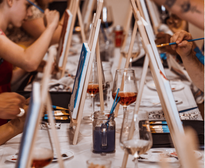 Creative Sip & Paint workshops for teams and corporate events.